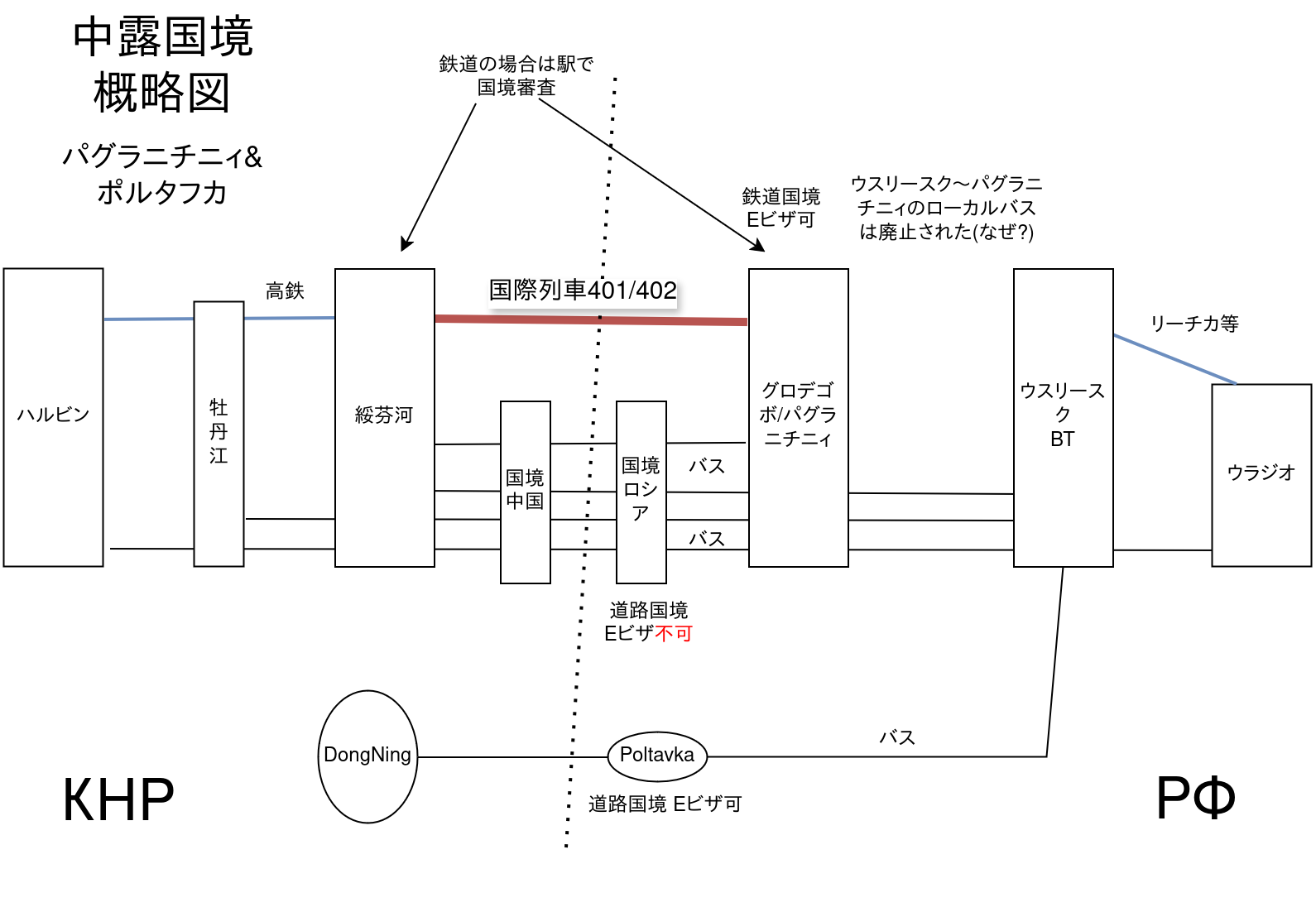 ウスリースクから行く場合、中国への直通バスに乗り、途中で下車し鉄道に乗り換えるという非効率なことになる。