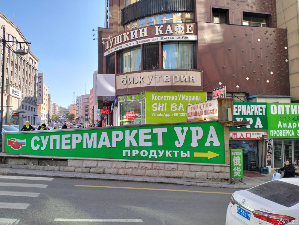 ロシアより活気がある雰囲気。さすが人口とアジアパワーだ。黒竜江省は中国でもGDPが低いというのを読んだが、寂れた雰囲気は感じなかった。自家用車の年式は古いのが居た。