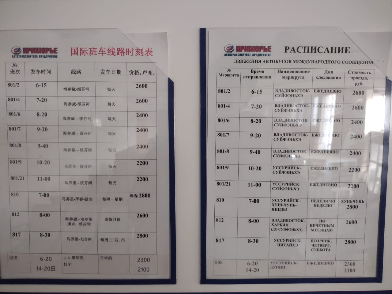 更にこのバスはウスリースク-パグラニチニィが1000Pと高額だ。