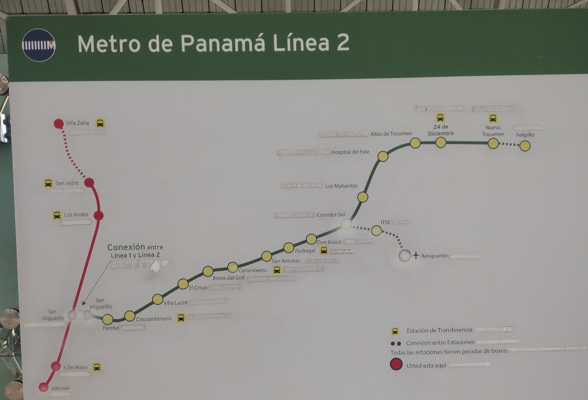 In March 2023, a 2.1 kilometres (1.3 mi) short three-station branch known as El Ramal opened, linking the main route at Corredor Sur station to Tocumen International Airport.