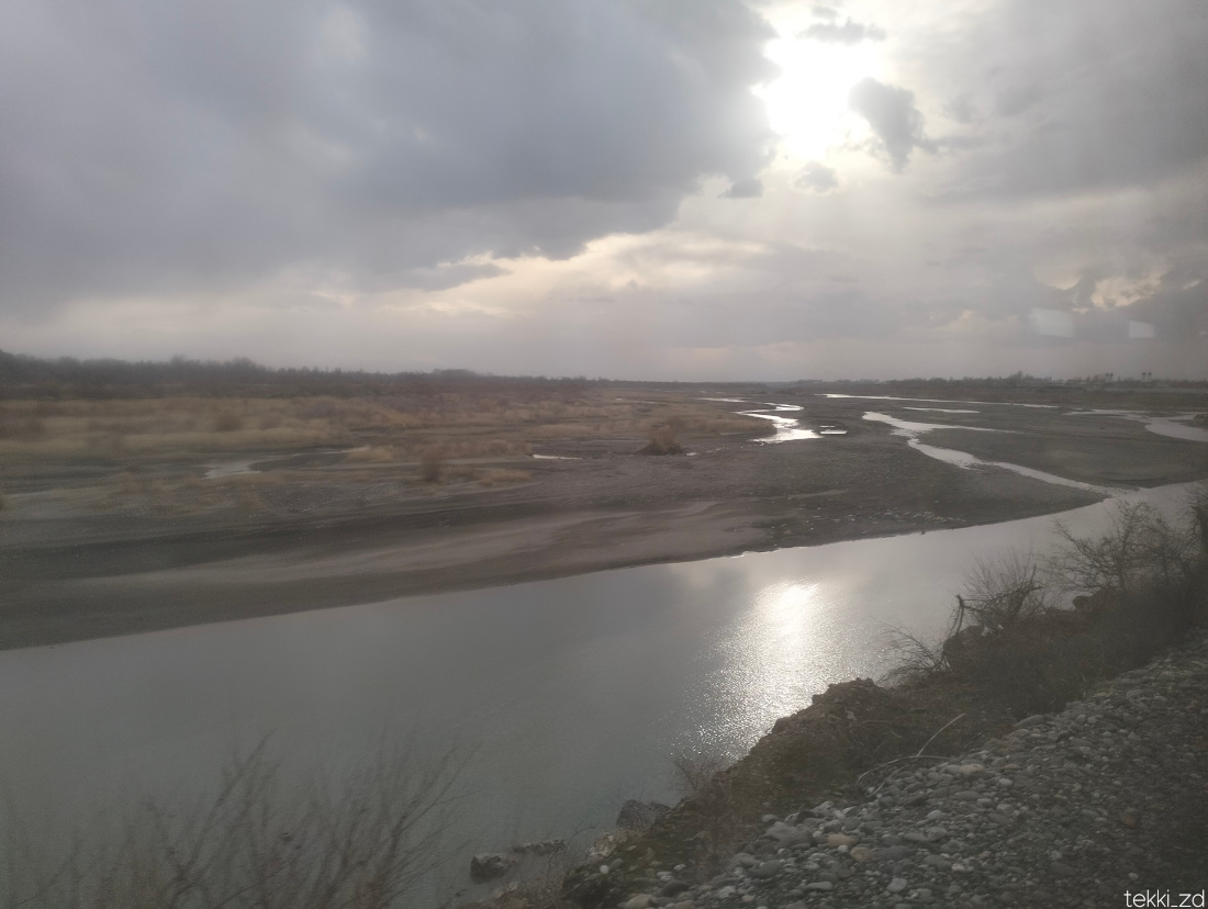 ザラフシャン川沿いを走る。山が遠い大糸線みたいで景色が良い。しかし鉄路は最早河川敷上にある。大雨洪水が起きたら一発な気がするが、ヤポンと違って水量が劇的に変わることは無いのだろう。